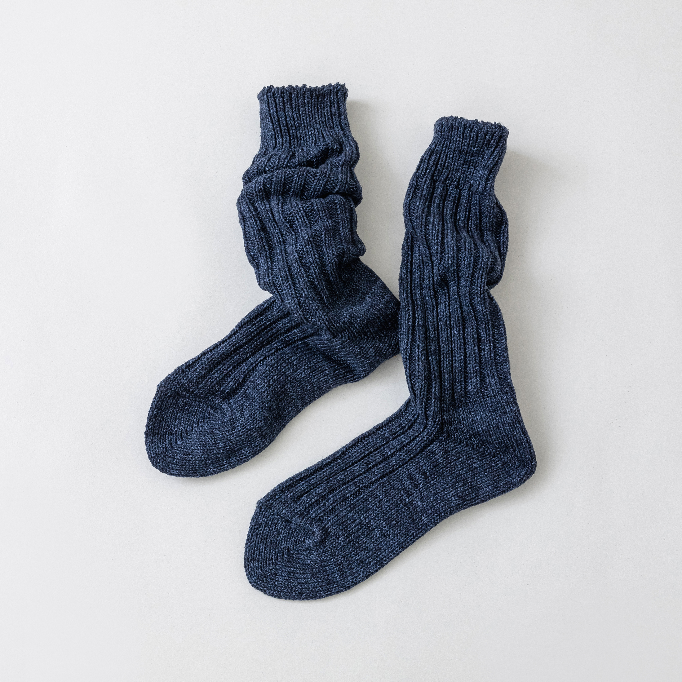 ■手間のかかるかせ染めの糸で編み立て、ヴィンテージ調の風合いの靴下に仕上がっています。