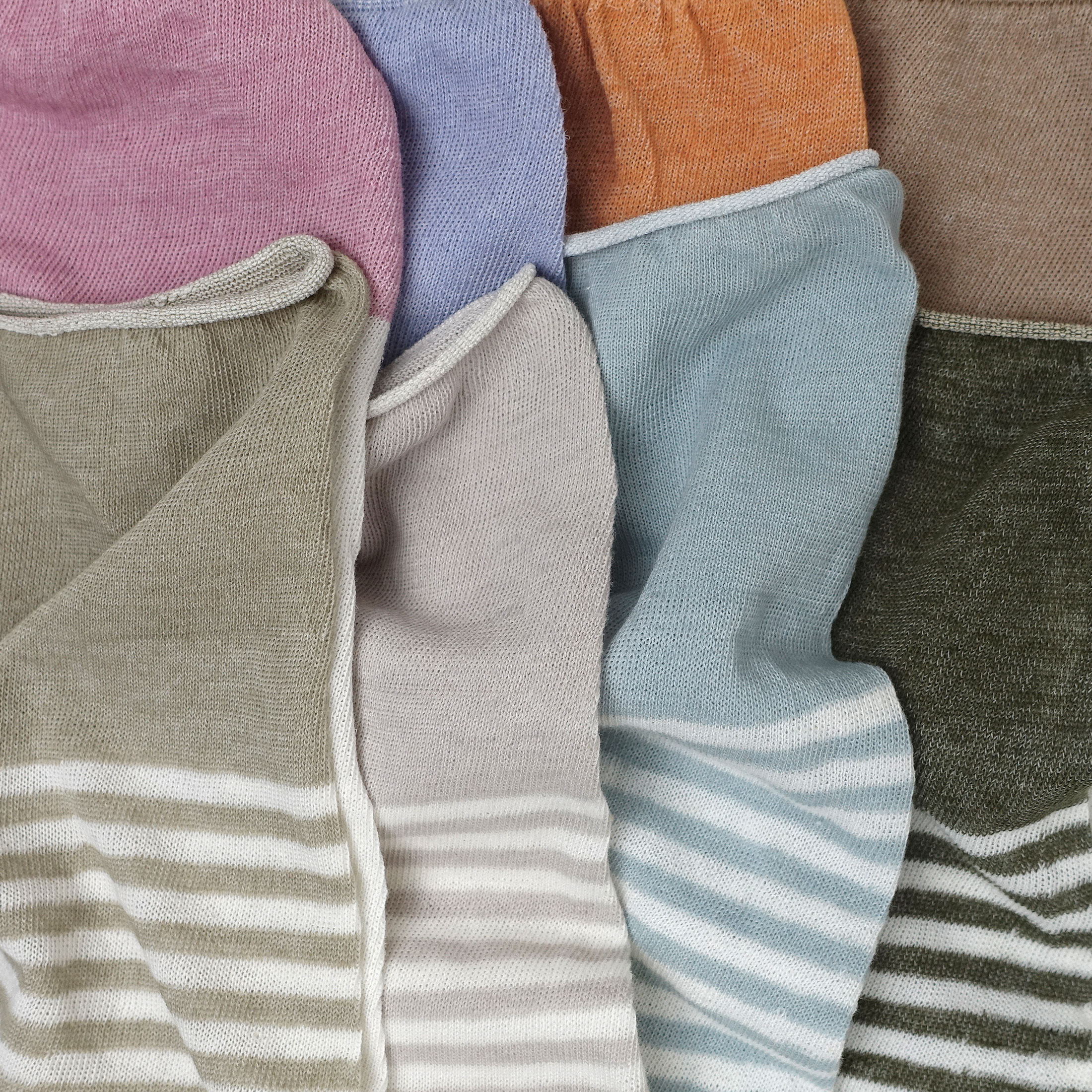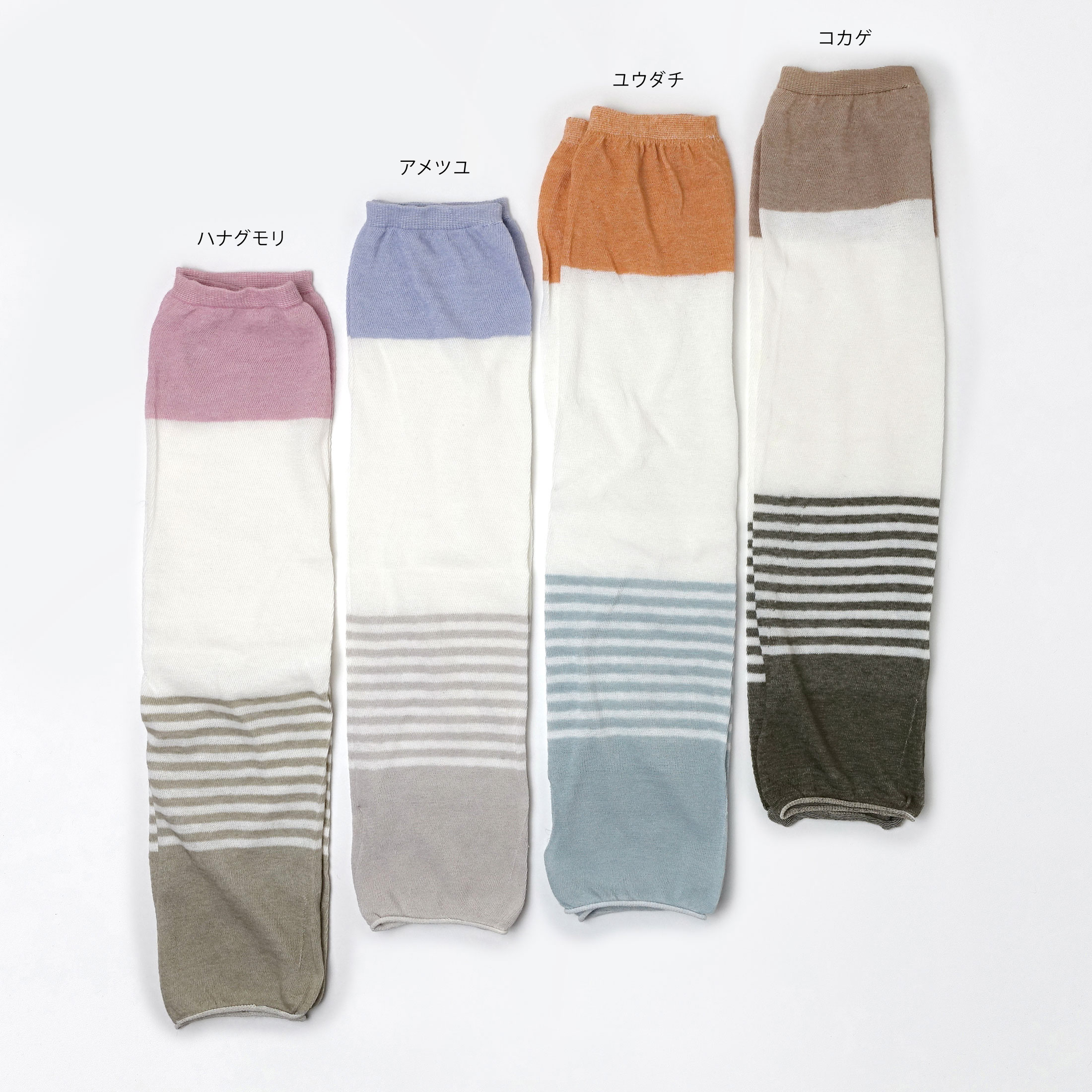 靴下づくりの知識を生かし、バンナーという希少な機械を親指用の穴が開くように改良して、綿と麻を編み上げた柔らかくゆったりとした着け心地のアームカバーです。